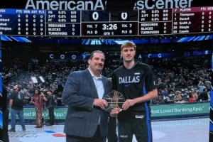 體育資訊12月7日訊 獨(dú)行俠主場迎戰(zhàn)火箭,狀元弗拉格賽前領(lǐng)取月最佳新秀獎。