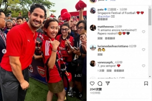 米蘭將在新加坡的季前賽中對陣阿森納,米蘭名宿帕托在新加坡參加季前賽活動,曬出與球迷的合照,配文:“新加坡足球節(jié)日?!?/p>