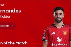 體育資訊12月9日訊 英超官方宣布,B費當選曼聯4-1狼隊的球迷票選最佳球員。