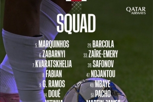 中場:8-法比安、17-維蒂尼亞、24-馬尤盧、33-扎伊爾·埃梅里、87-若昂-內(nèi)維斯