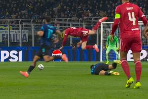 體育資訊12月10日訊 國(guó)米vs利物浦第13分鐘,勞塔羅滑鏟鏟飛羅伯遜,裁判出示黃牌。