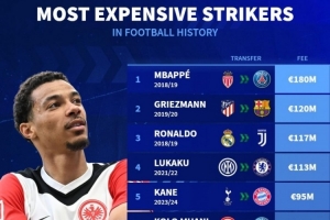 姆巴佩(摩納哥→巴黎)——1.8億歐