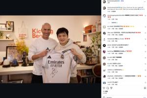 同時(shí)樊振東艾特齊達(dá)內(nèi)寫道:親愛的齊祖,謝謝你暖心的禮物,也希望你喜歡我送的禮物,下次我們一起踢足球。
