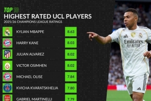 體育資訊12月11日訊 WhoScored統(tǒng)計(jì)了本賽季球員在歐冠比賽中的場均評分,并列出評分最高榜單,姆巴佩8.63分居首,凱恩8.03分次席。
