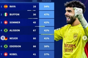 體育資訊12月11日訊 德轉(zhuǎn)盤點(diǎn)了近10年歐冠門將零封場(chǎng)次占比排行榜(至少25次出場(chǎng)),其中拉亞54%的比賽能夠零封居首,具體如下(比賽場(chǎng)次+零封比例):