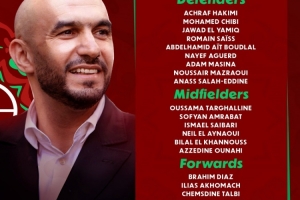 體育資訊12月11日訊 非洲杯即將來(lái)臨,奪冠熱門摩洛哥公布了參賽大名單,阿什拉夫、布拉希米·迪亞斯、馬茲拉維領(lǐng)銜,布努、阿姆拉巴特入選。