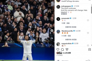 本場(chǎng)比賽羅德里戈率先破門(mén),打破個(gè)人連續(xù)32場(chǎng)進(jìn)球荒,他在社媒曬出本場(chǎng)照片,配文寫(xiě)道:“還要繼續(xù)努力,我們會(huì)改變現(xiàn)狀,Hala Madrid! ????”