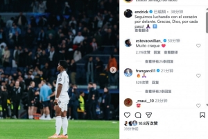 本場比賽恩德里克替補(bǔ)登場,他也在個(gè)人社媒曬出本場照片,配文寫道:“我們將繼續(xù)全力以赴地戰(zhàn)斗。感謝上帝一路以來的指引!”