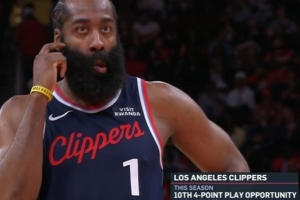 快船客場VS火箭,第四節(jié)哈登打進3+1。轉(zhuǎn)播方統(tǒng)計,哈登本賽季已經(jīng)10次3+1,領(lǐng)跑全聯(lián)盟。
