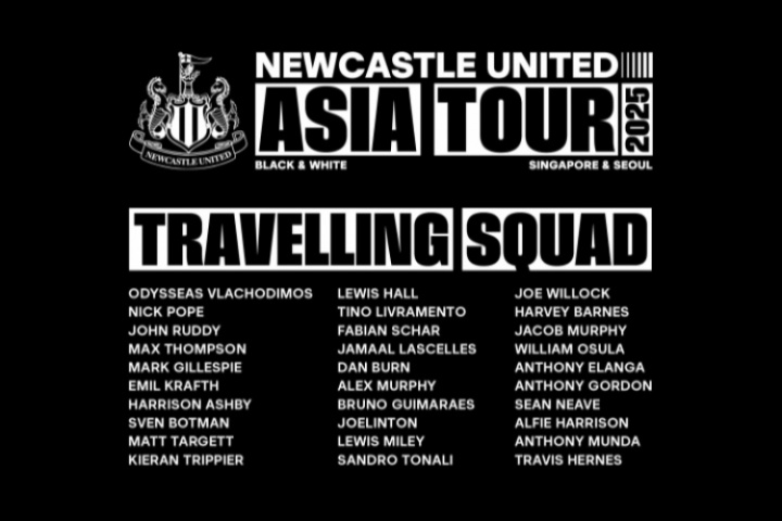 體育資訊07月24日訊 紐卡官方公布了今夏前往亞洲參加季前賽的名單,新援伊蘭加在列,但球隊主力前鋒伊薩克卻不在名單中。