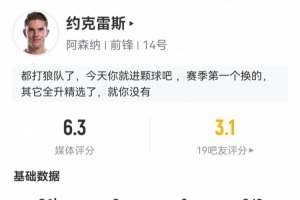 下一篇: 約克雷斯數(shù)據(jù):首發(fā)戰(zhàn)狼隊81分鐘15次觸球1射0正,評分僅6.3
