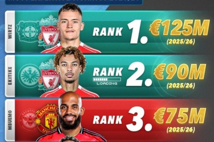 體育資訊07月24日訊 Score90按照轉(zhuǎn)會費用,盤點了正在進行的夏窗至今為止的轉(zhuǎn)會榜單,維爾茨以1.25億歐元轉(zhuǎn)會費居首,前五全部由英超包攬,其中利物浦、曼聯(lián)各占2席,阿森納也在榜單中占據(jù)1席。