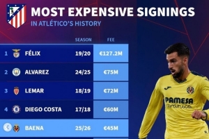 體育資訊7月2日訊 馬競(jìng)已經(jīng)官宣簽下黃潛中場(chǎng)巴埃納,《轉(zhuǎn)會(huì)市場(chǎng)》也列出了馬競(jìng)隊(duì)史引援榜情況,菲利克斯斷崖領(lǐng)跑。