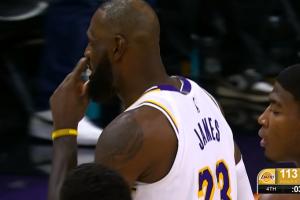 GIF-詹姆斯三分出手!裁判吹了太陽犯規(guī)!太陽挑戰(zhàn)失??!