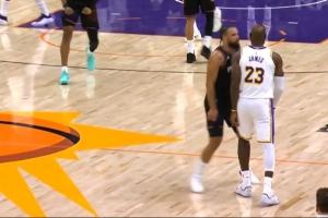 GIF-阿倫投籃被詹姆斯蓋帽,斯瑪特籃板造成犯規(guī)