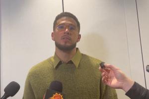 賽后,布克接受采訪時談到了自己對詹姆斯的關鍵三分犯規(guī)。