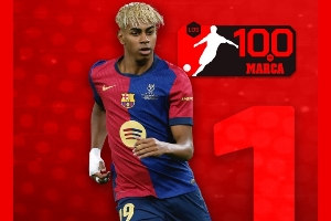 體育資訊07月25日訊 西班牙媒體《馬卡報》發(fā)起24/25賽季世界足壇百大球星評選,18歲亞馬爾當選賽季最佳球員,以超過200分的優(yōu)勢力壓登貝萊和維蒂尼亞獲獎。