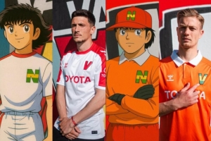 新發(fā)布的客場(chǎng)球衣以白色為主,搭配紅色條紋,其設(shè)計(jì)靈感來自動(dòng)漫主角之一奧利弗-阿頓(Olivier Atton)所穿的球衣。守門員的橙色球衣則與動(dòng)漫中的托馬斯-普賴斯(Thomas Price)的球衣如出一轍,僅將“N”標(biāo)志替換為瓦朗謝納的“V”。