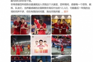 最后還是很高興這四年能在河南完成個(gè)人河南百場(chǎng),也很高興打進(jìn)了河南的第1000粒進(jìn)球,唯有在足協(xié)杯上留有遺憾。但我相信,河南足球一定會(huì)有更輝煌的明天。
