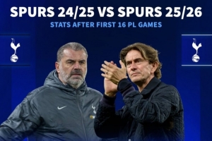 體育資訊12月16日訊 熱刺在本賽季英超表現(xiàn)低迷,新帥弗蘭克執(zhí)教未能達到預(yù)期,《轉(zhuǎn)會市場》統(tǒng)計顯示熱刺的表現(xiàn)還不及上賽季同期。