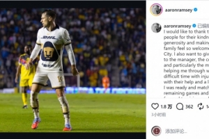 墨西哥美洲獅與拉姆塞解約,拉姆塞社媒寫道:“我想感謝墨西哥人民對我的友善與慷慨,讓我和我的家人在墨西哥城感受到如此溫暖的歡迎。我還要特別感謝主教練、教練組,尤其是醫(yī)療團隊,在我受傷的艱難時期給予我的幫助。在他們的支持和努力下,我恢復了狀態(tài),為接下來的比賽做好了準備,期待為美洲獅貢獻自己的最好表現(xiàn)。”