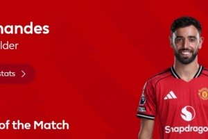 本場(chǎng)比賽B費(fèi)傳射建功發(fā)揮出色,賽后他也當(dāng)選英超官方評(píng)選出的本場(chǎng)最佳球員。