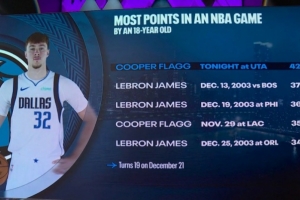 本場比賽,獨行俠狀元弗拉格表現(xiàn)出色,再次刷新生涯得分新高(此前35分),在42分鐘的時間里,投籃27中13,三分球4中1,罰球20中15,空砍42分7籃板6助攻1搶斷2蓋帽的數(shù)據(jù)。
