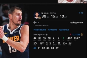 本場(chǎng)比賽約基奇砍下39分15板10助2斷2帽,申京砍下33分10板10助2斷。