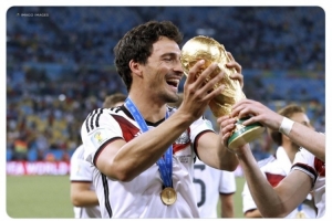 德國隊官方社媒曬出胡梅爾斯與大力神杯的合照,配文:“生日快樂,胡梅爾斯!2014年世界杯冠軍?!?/p>