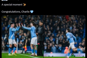 曼城官方寫道:“特別的時刻。祝賀你,查理?!?/p>