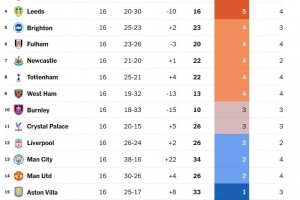 2、狼隊(duì)以7個(gè)烏龍球位居榜首,平均每8場(chǎng)比賽就有1個(gè)烏龍球,桑德蘭(6個(gè))、利茲聯(lián)和布倫特福德(各5個(gè))緊隨其后。