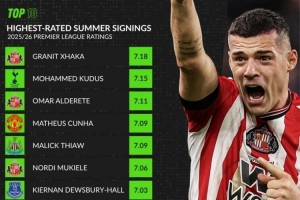 whoscored英超新援評分榜:扎卡居首,庫尼亞、佩德羅、埃澤在列