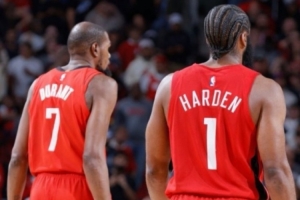 賽后快船媒體APHoops曬出哈登身穿火箭球衣、與杜蘭特同框的P圖,寫道:“嘿@火箭?!?/p>