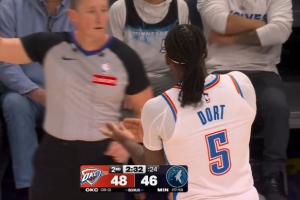 有火氣!麥丹三分命中同時 多特卡位推搡戈貝爾被吹犯規(guī) 送罰球
