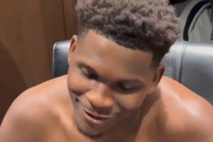 賽后,愛(ài)德華茲在更衣室接受了記者的采訪。
