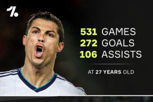 體育資訊12月20日訊 姆巴佩年滿27歲之際,知名媒體OneFootball曬圖,對(duì)比了姆巴佩和C羅27歲時(shí)的數(shù)據(jù)。