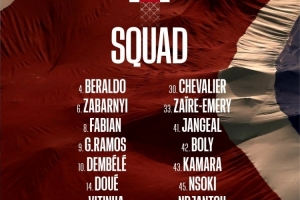 巴黎法國(guó)杯名單:登貝萊、杜埃在列,K77、巴爾科拉、李剛?cè)嗜毕?/h1>