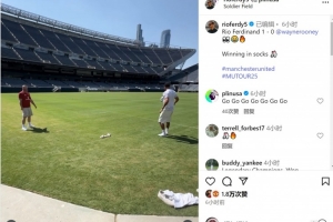費(fèi)迪南德與魯尼在美國(guó)一起參加活動(dòng),兩人在球場(chǎng)內(nèi)顛球互傳,最終魯尼失誤。