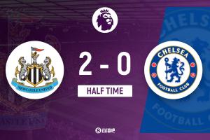 半場(chǎng)結(jié)束,切爾西暫0-2紐卡斯?fàn)枴?/p>