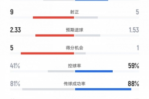 上一篇: 尤文vs羅馬數(shù)據(jù):射門13比14、進(jìn)球機(jī)會(huì)5比1、控球率41%比59%