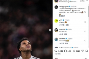 羅德里戈賽后社媒寫(xiě)道:“‘風(fēng)雨過(guò)后,陽(yáng)光總會(huì)重現(xiàn),保持信念????’感謝伯納烏,2026年再見(jiàn)。”
