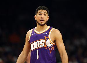 太陽主將布克上半場表現(xiàn)出色,進(jìn)攻上相當(dāng)穩(wěn)健,面對勇士后衛(wèi)單打成功率非常高,還能為隊(duì)友送出助攻。