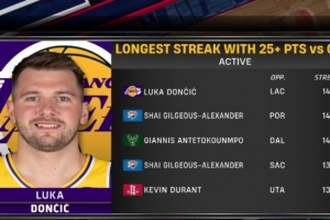 現(xiàn)存球員VS球隊連續(xù)25+紀(jì)錄排名: