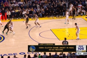 比賽第四節(jié)雙方雙方比分緊咬,轉(zhuǎn)播方曬出一組數(shù)據(jù):勇士近3個(gè)賽季有109場(chǎng)比賽打到關(guān)鍵時(shí)刻(含本場(chǎng)),為聯(lián)盟最多!