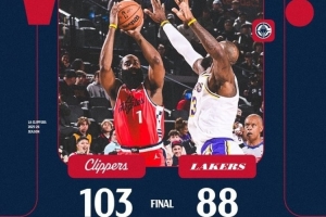 體育資訊12月21日訊 洛城德比快船103-88戰(zhàn)勝湖人。