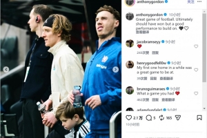 戈登賽后更新社媒動(dòng)態(tài),曬出多張此役的照片,配文:“精彩的足球比賽,雖然最終本應(yīng)取勝,但這場(chǎng)的出色表現(xiàn)可以成為繼續(xù)進(jìn)步的基石?!?/p>