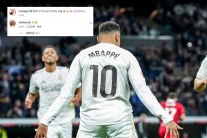 姆巴佩寫道:“相信你的夢(mèng)想。致敬王者????”,C羅則回復(fù)了“????”兩個(gè)表情,這則回復(fù)在5分鐘內(nèi)得到了超過5000次點(diǎn)贊。