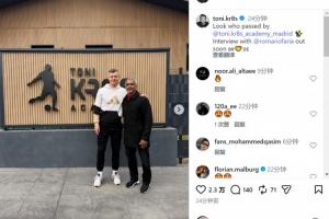 克羅斯社媒曬出合照,配文:“看看誰來青訓學院了?與羅馬里奧的專訪即將發(fā)布?!?/p>