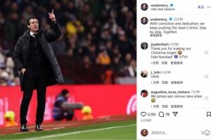 體育資訊12月22日訊 今天凌晨,維拉在英超主場2-1擊敗曼聯(lián),球隊(duì)主帥埃梅里賽后在Instagram發(fā)文慶祝勝利。