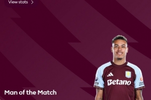 此役羅杰斯梅開(kāi)二度,幫助維拉取勝,英超官方宣布,他當(dāng)選本場(chǎng)比賽最佳球員。